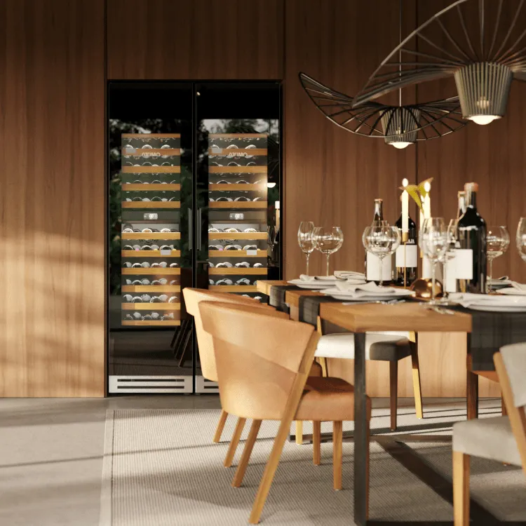 Compacta e eficiente, a adega undercounter oferece espaço para armazenar sua coleção de vinhos sem ocupar muito espaço. Design moderno e funcional para quem busca otimizar o ambiente.